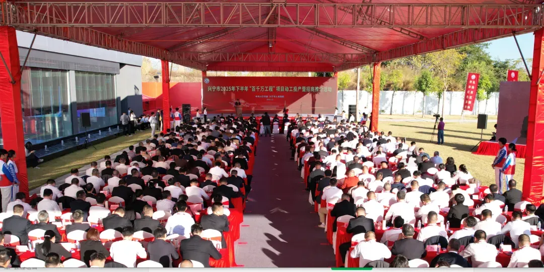 11月24日,第七届世界客商大会兴宁市“百千万工程”项目动工投产暨招商推介活动在宁中镇跃速体育产业园举行,动工投产签约项目45个,计划总投资109.49亿元。这是兴宁市贯彻落实党的二十届四中全会精神和习近平总书记视察广东重要讲话重要指示精神,加快兴宁苏区振兴发展的具体行动,也是兴宁“百千万工程”三年初见成效的集中展示,将为“再造一个新兴宁”注入强大动能。